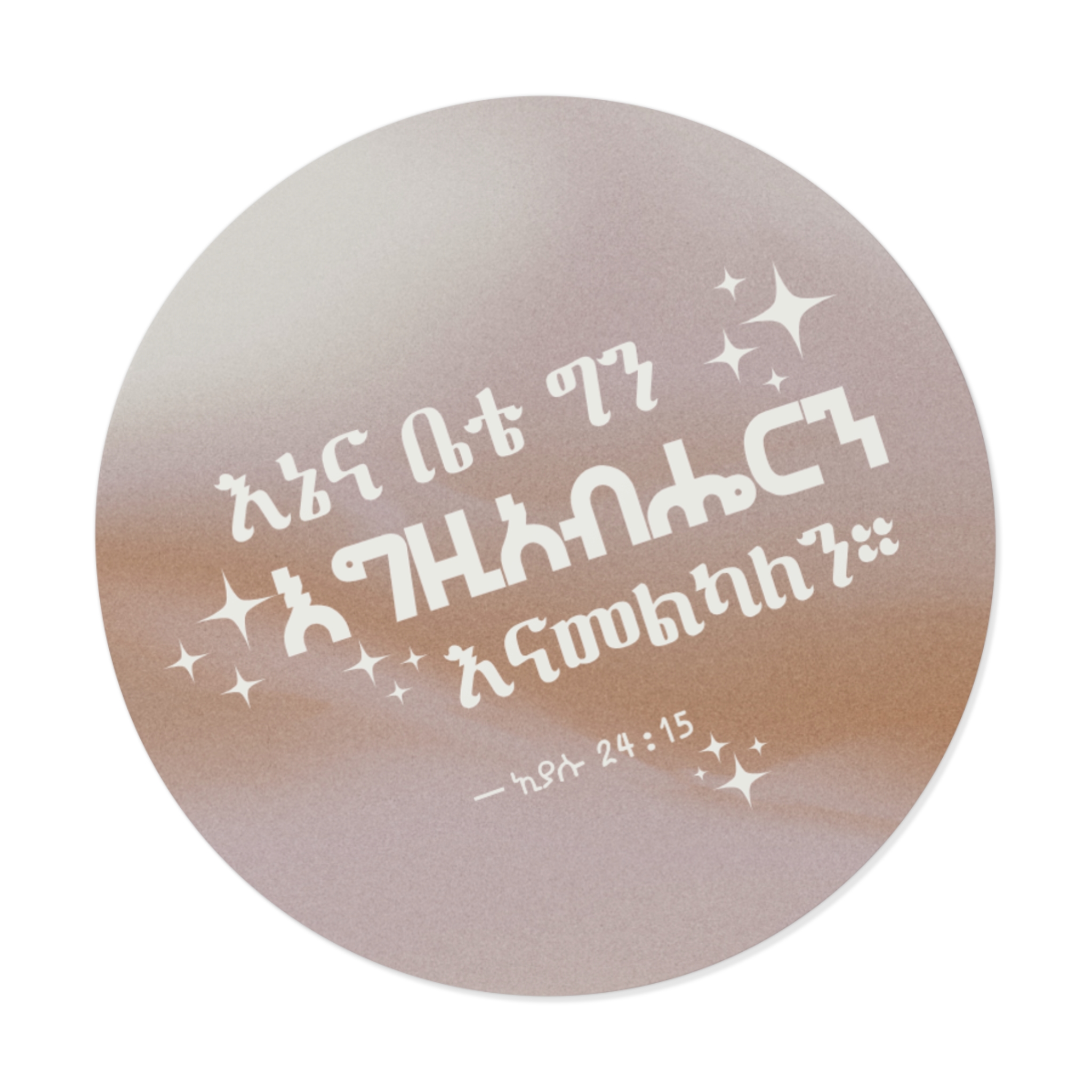 Declare your home’s devotion with this beautiful Amharic Joshua 24:15 sticker, featuring the verse: