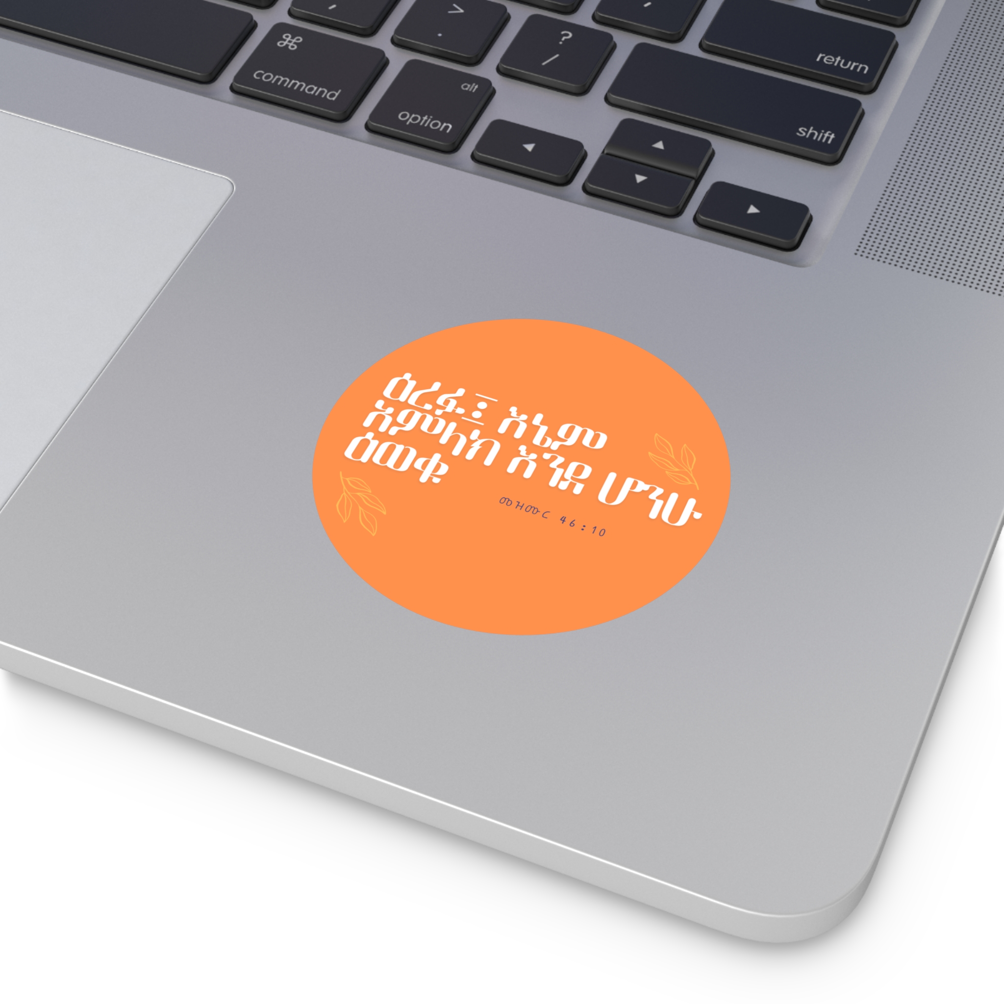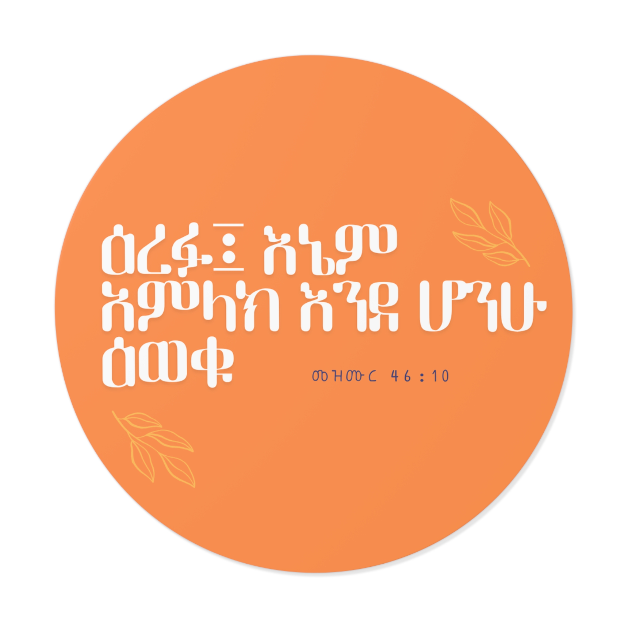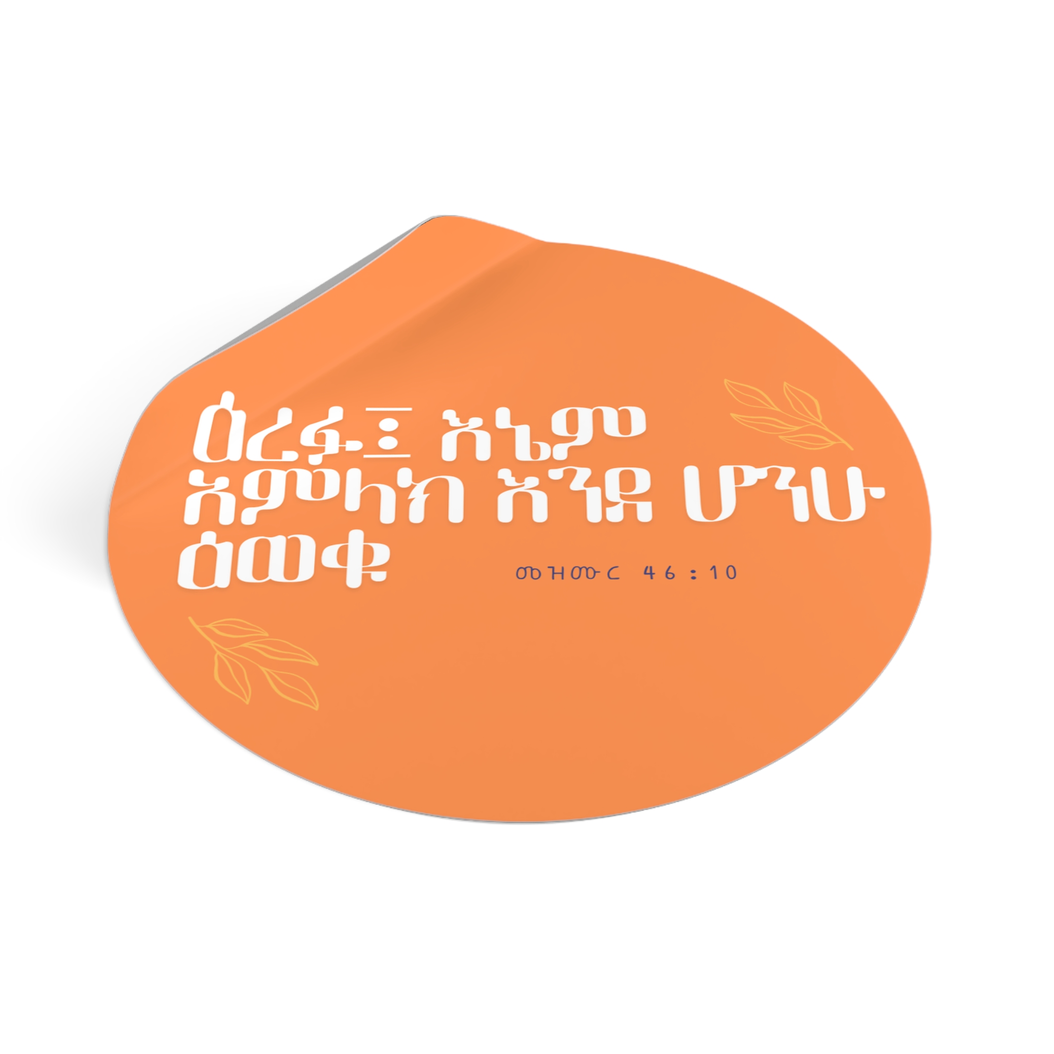 Find peace in God’s presence with this beautiful Amharic Psalm 46:10 vinyl sticker featuring the verse: