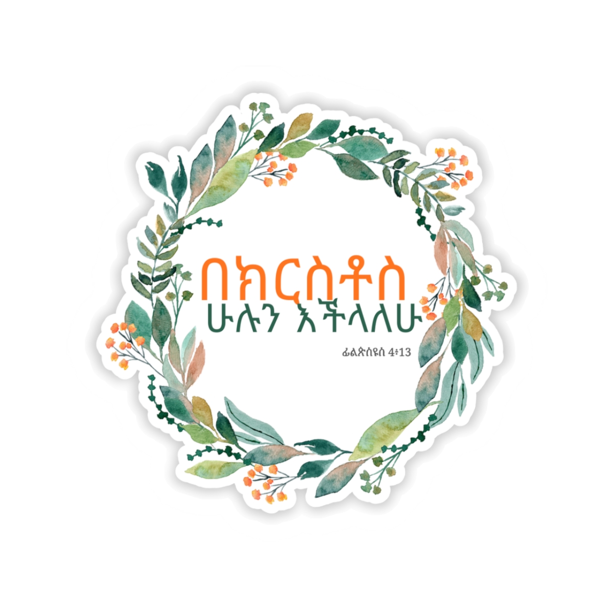 Declare that you can do all things through Christ with our “በክርስቶስ ሁሉን እችላለሁ” (ፊልጵስዩስ 4፥13) sticker.