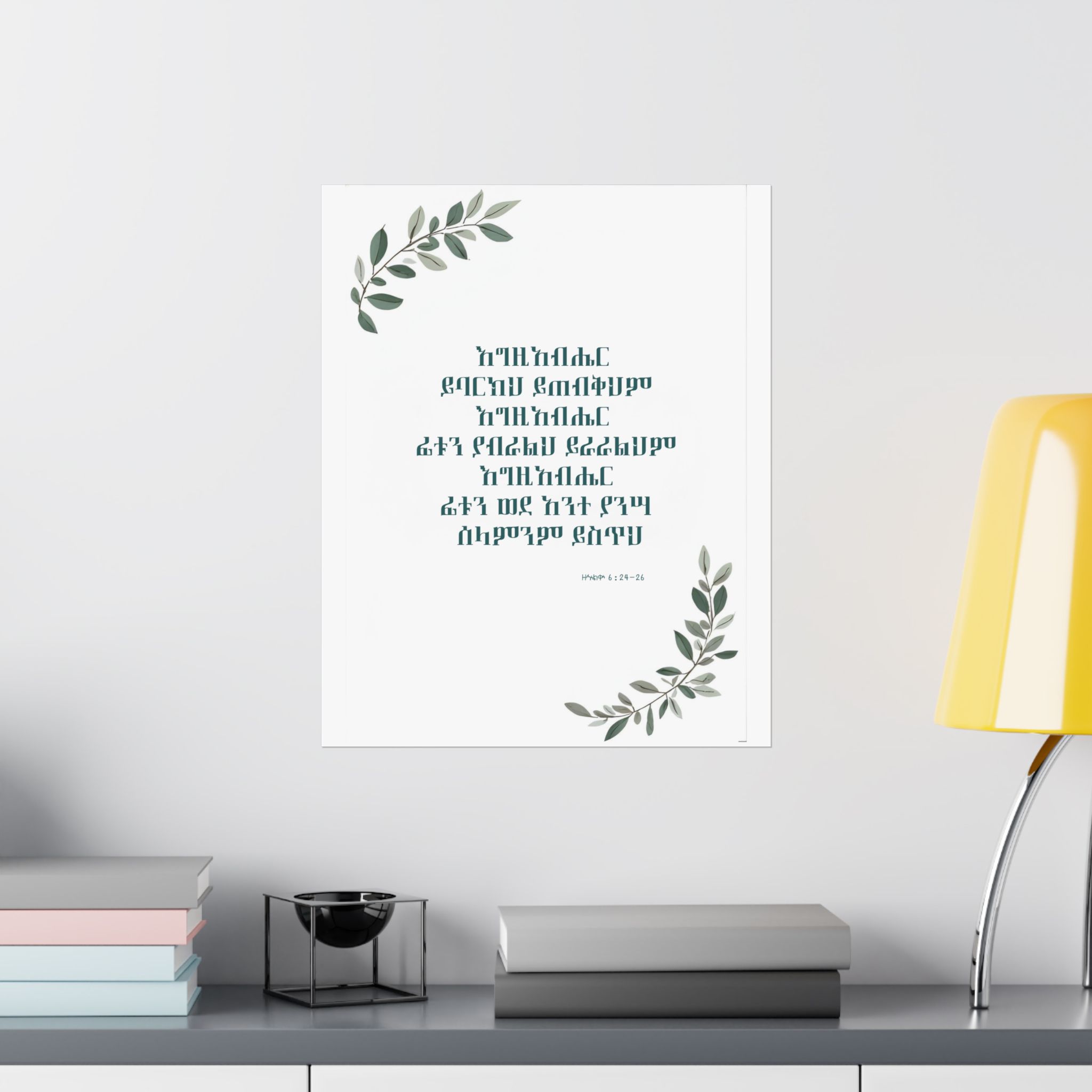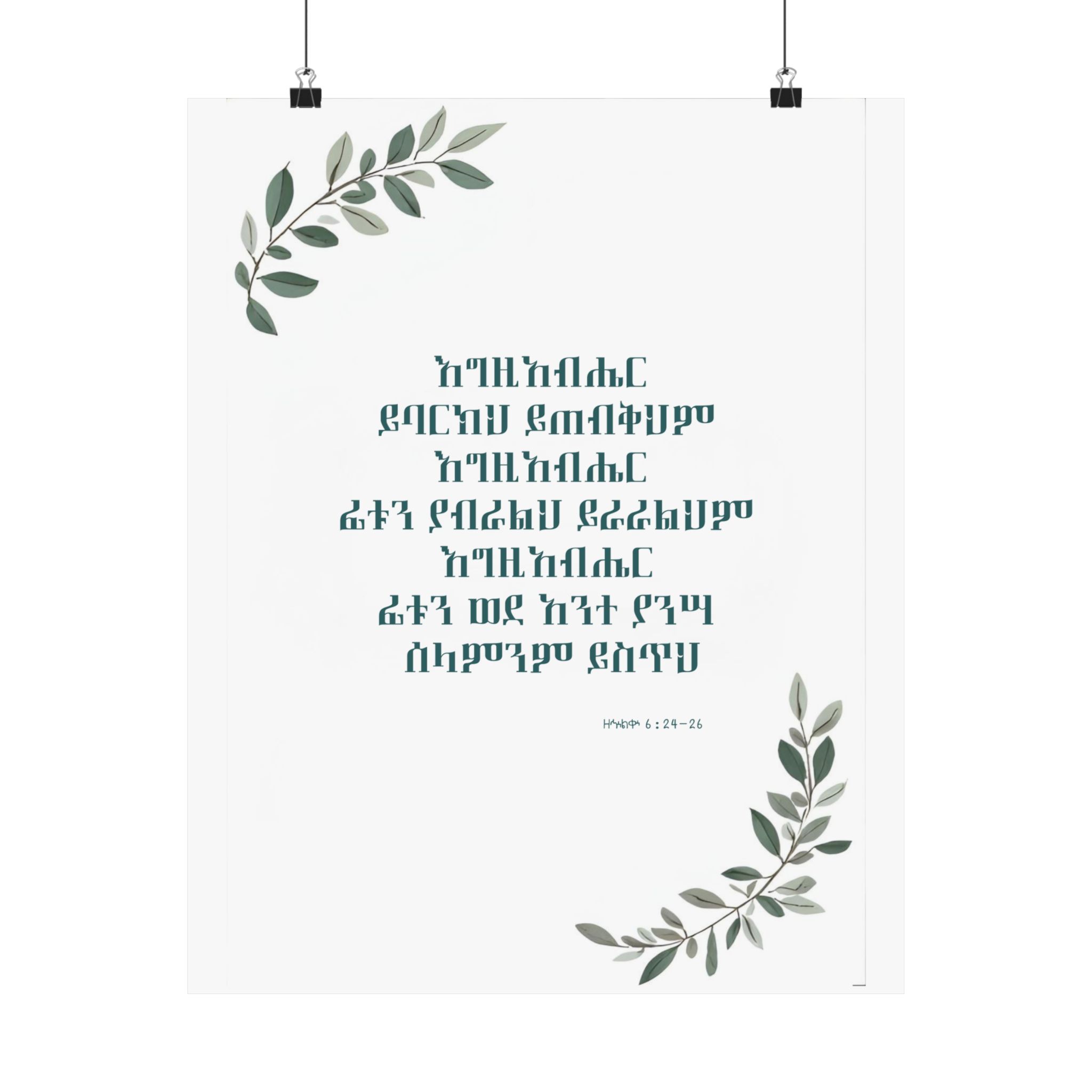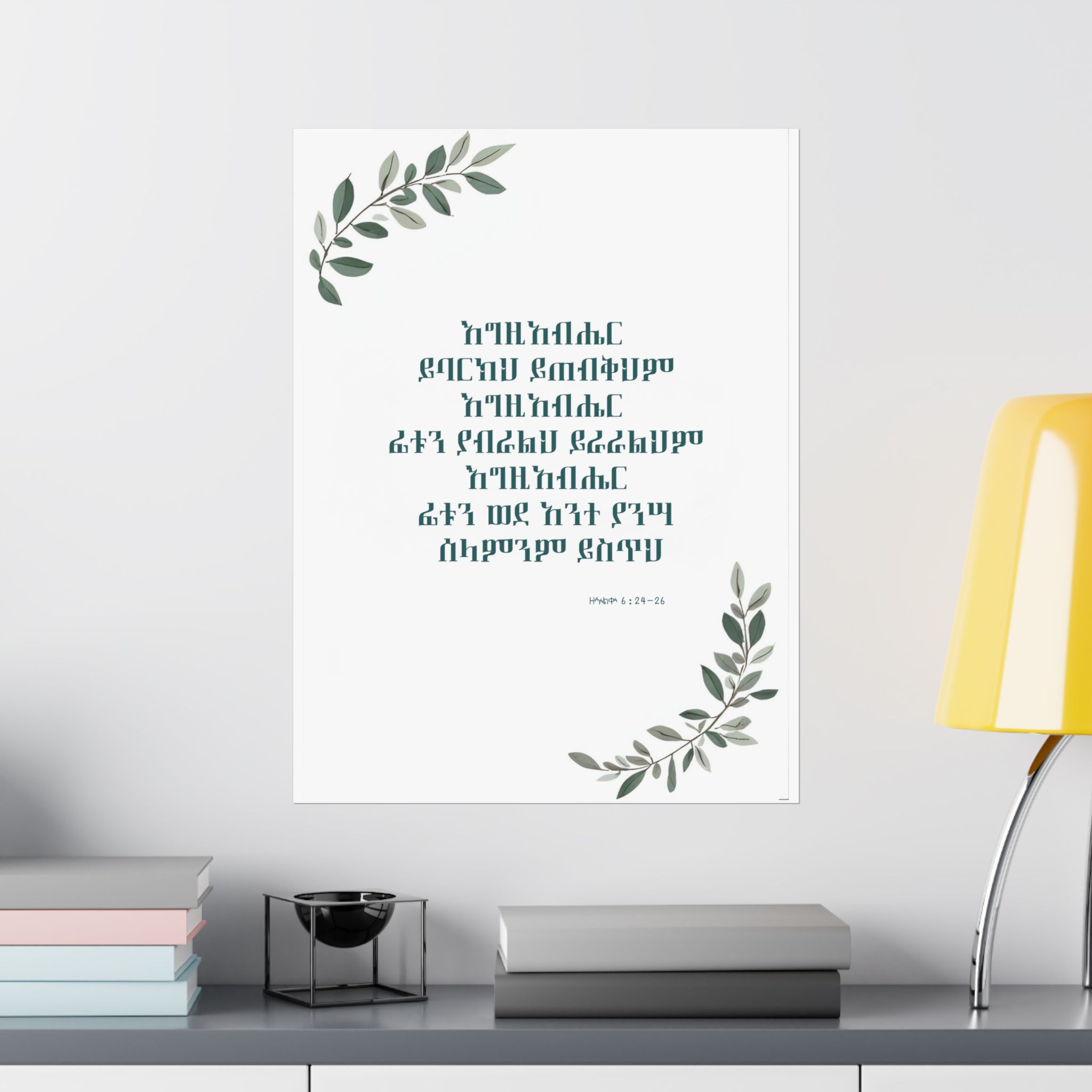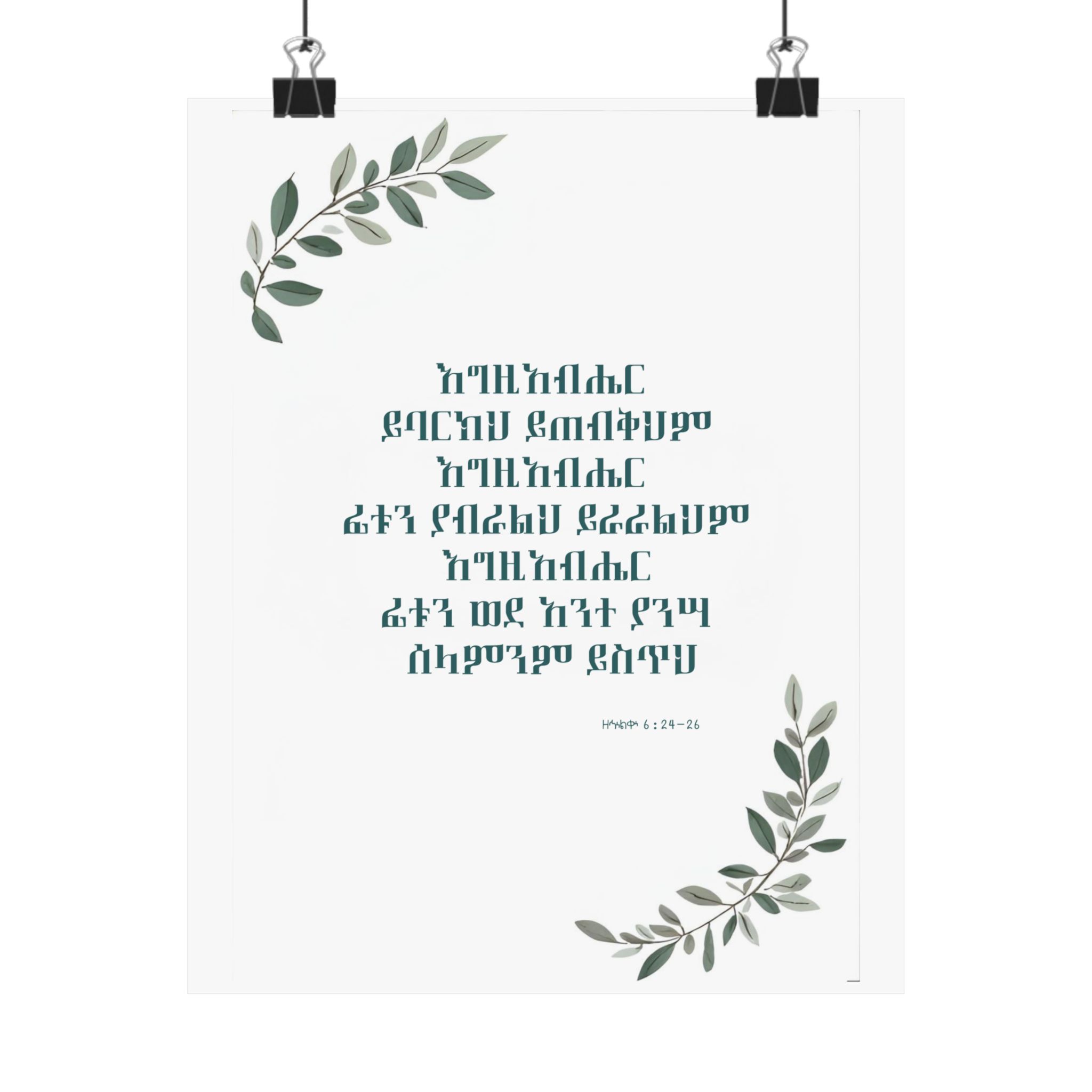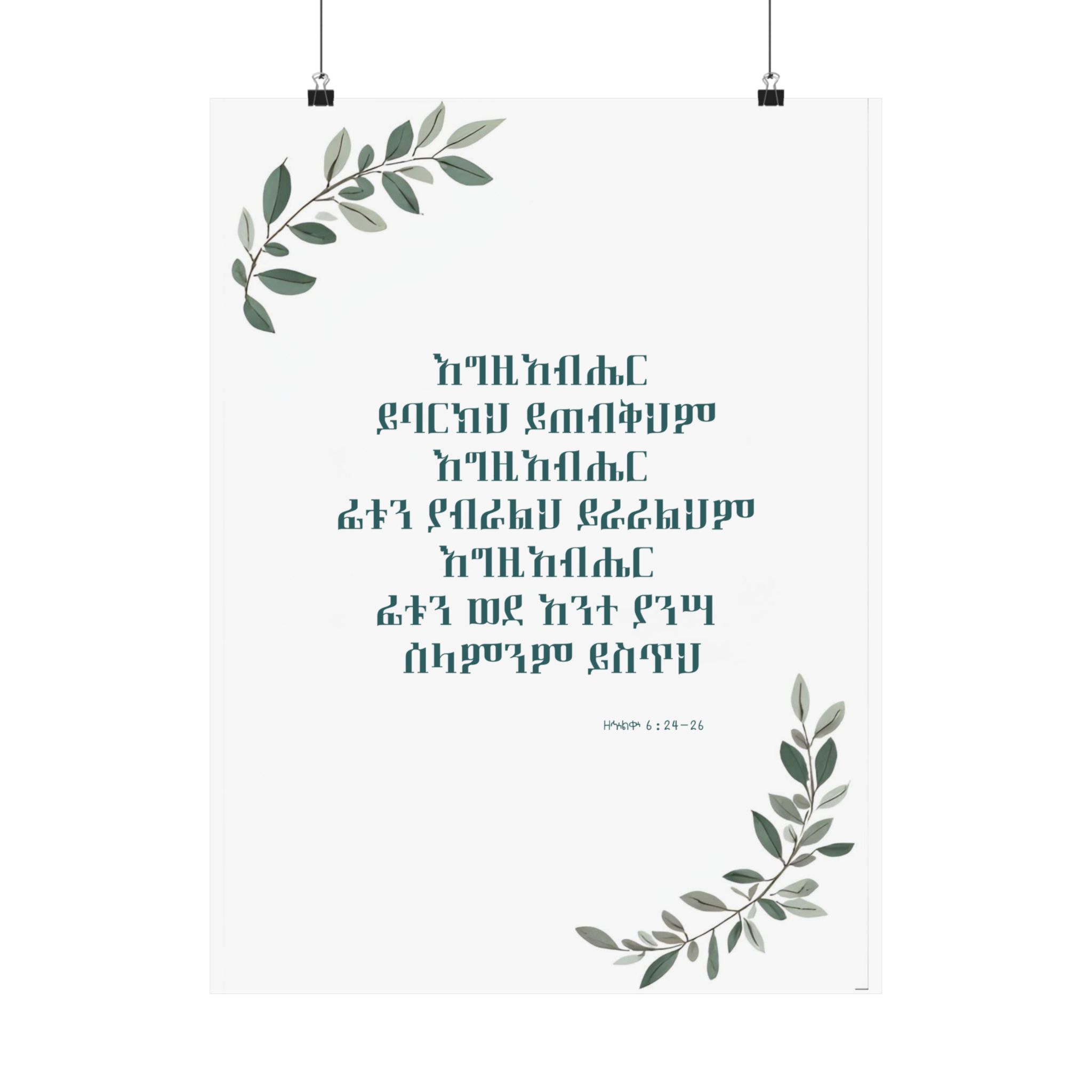 Bring God’s blessing and peace into your home with this Amharic poster featuring ዘኍልቍ 6:24–26: