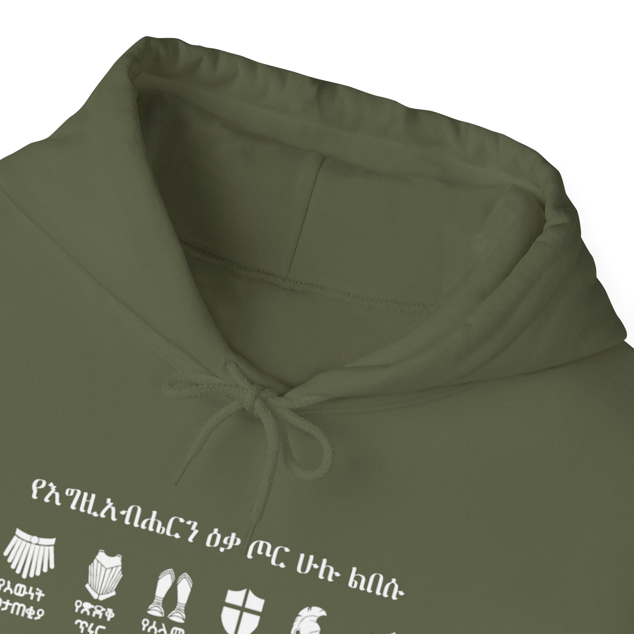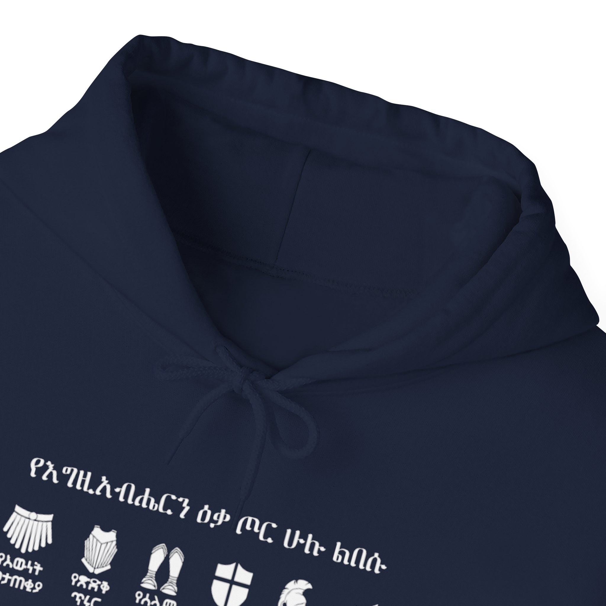 Put on the Armor of God with this cozy and stylish hoodie, designed to remind you of your daily strength in Christ. Made from a soft cotton-polyester blend, it’s perfect for chilly days or casual outings. The kangaroo pocket and drawstring hood add practicality, while the bold message inspires faith wherever you go.