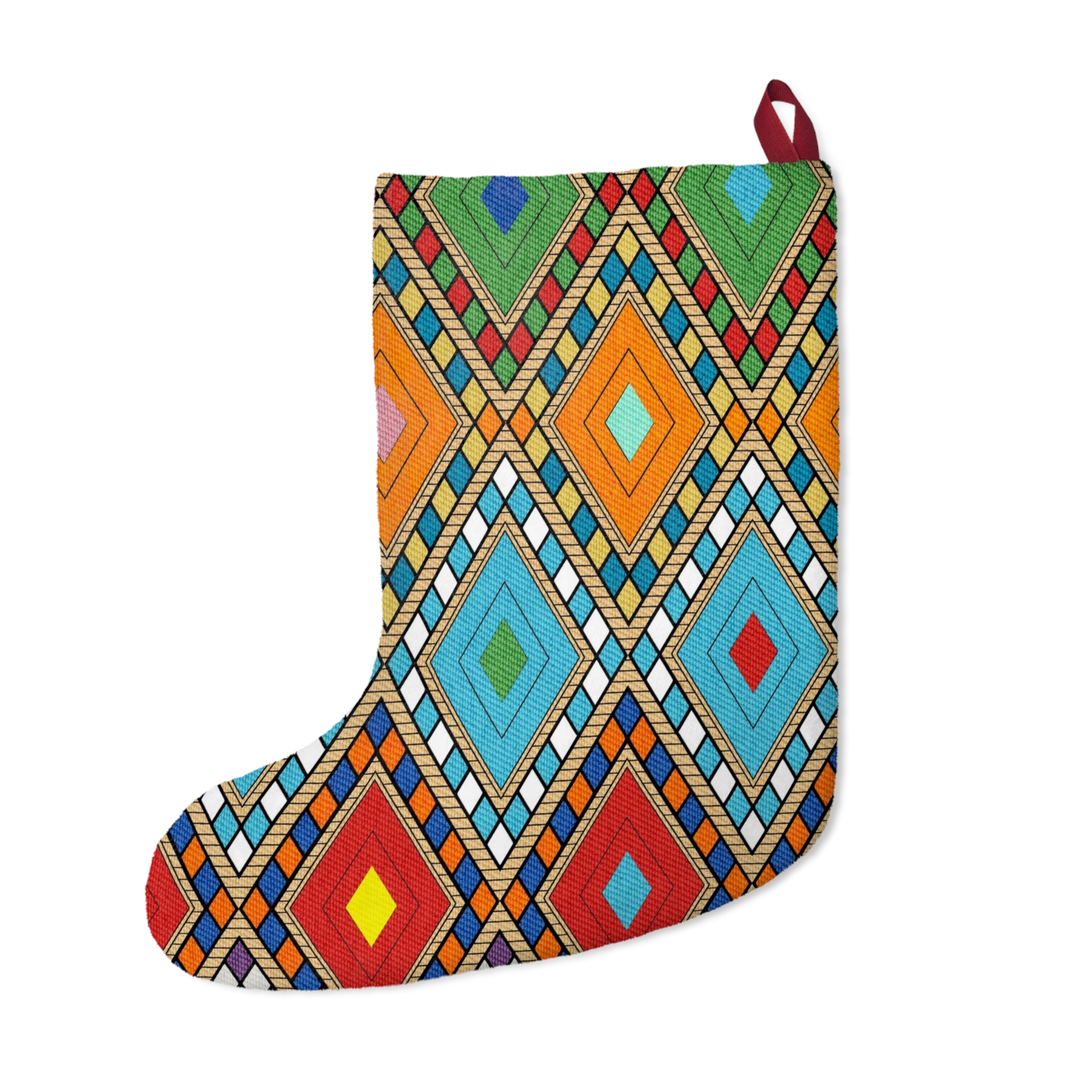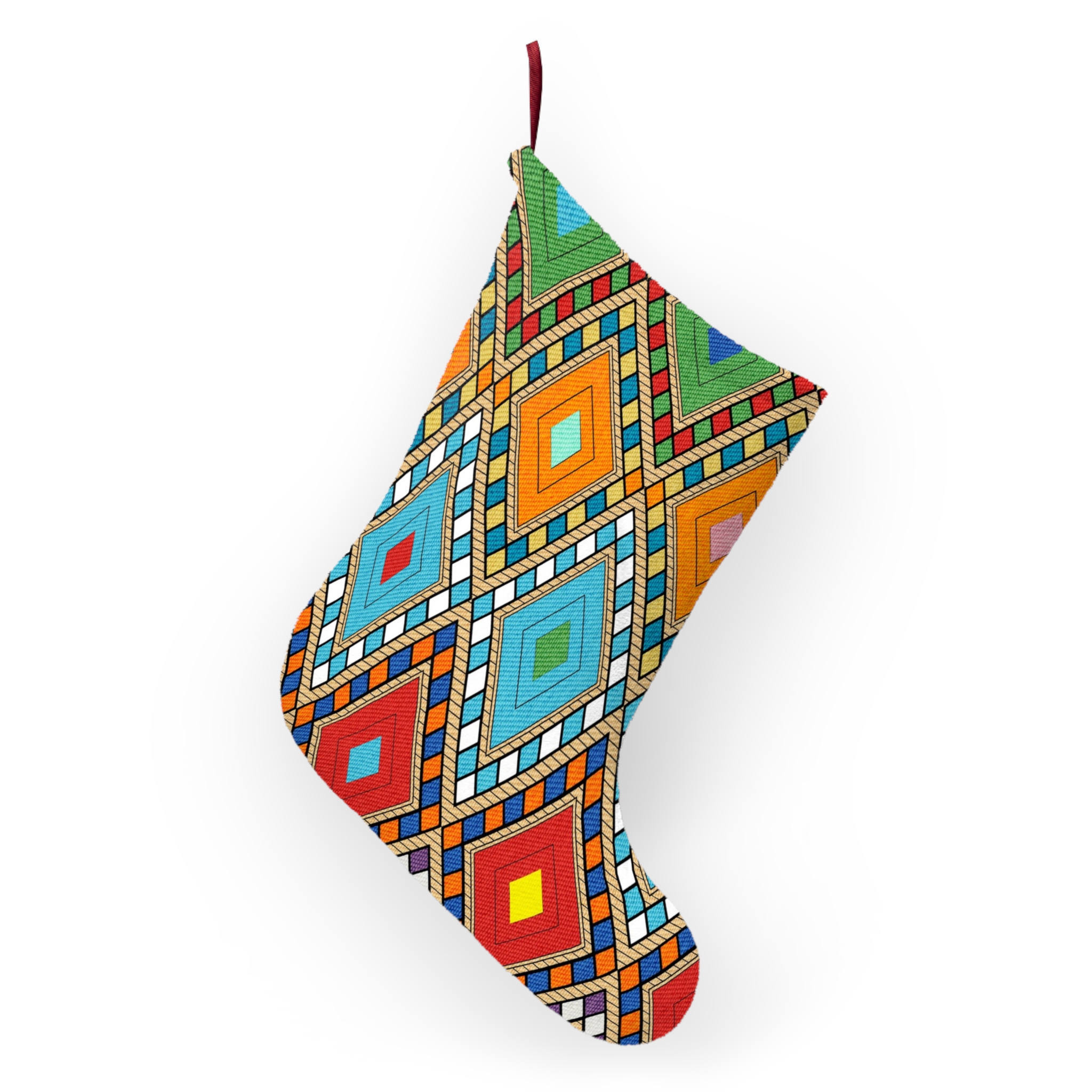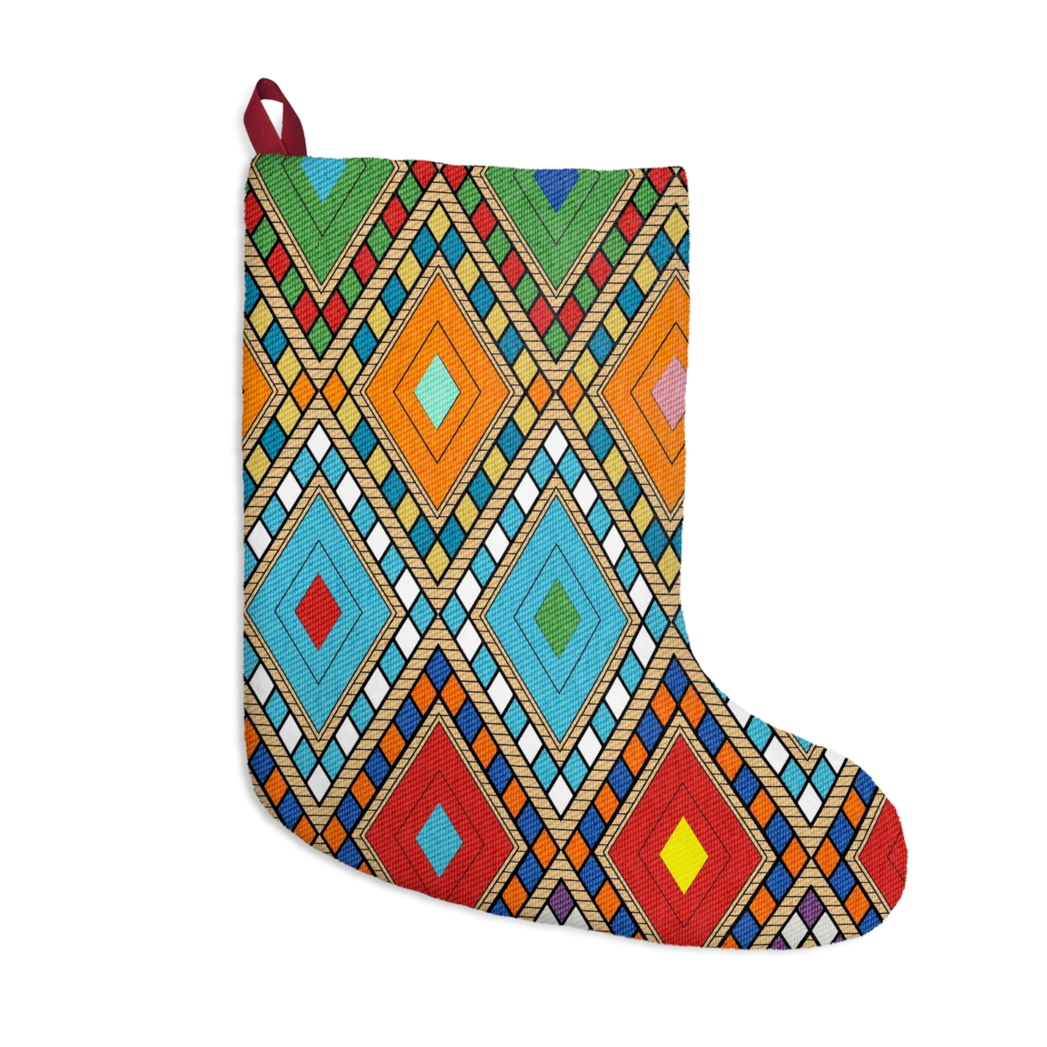 Bring warmth and tradition to your holiday decor with this Ethiopian Telet Christmas Stocking. Featuring the iconic Telet design, this stocking is perfect for livening up any fireplace while celebrating Ethiopian heritage.