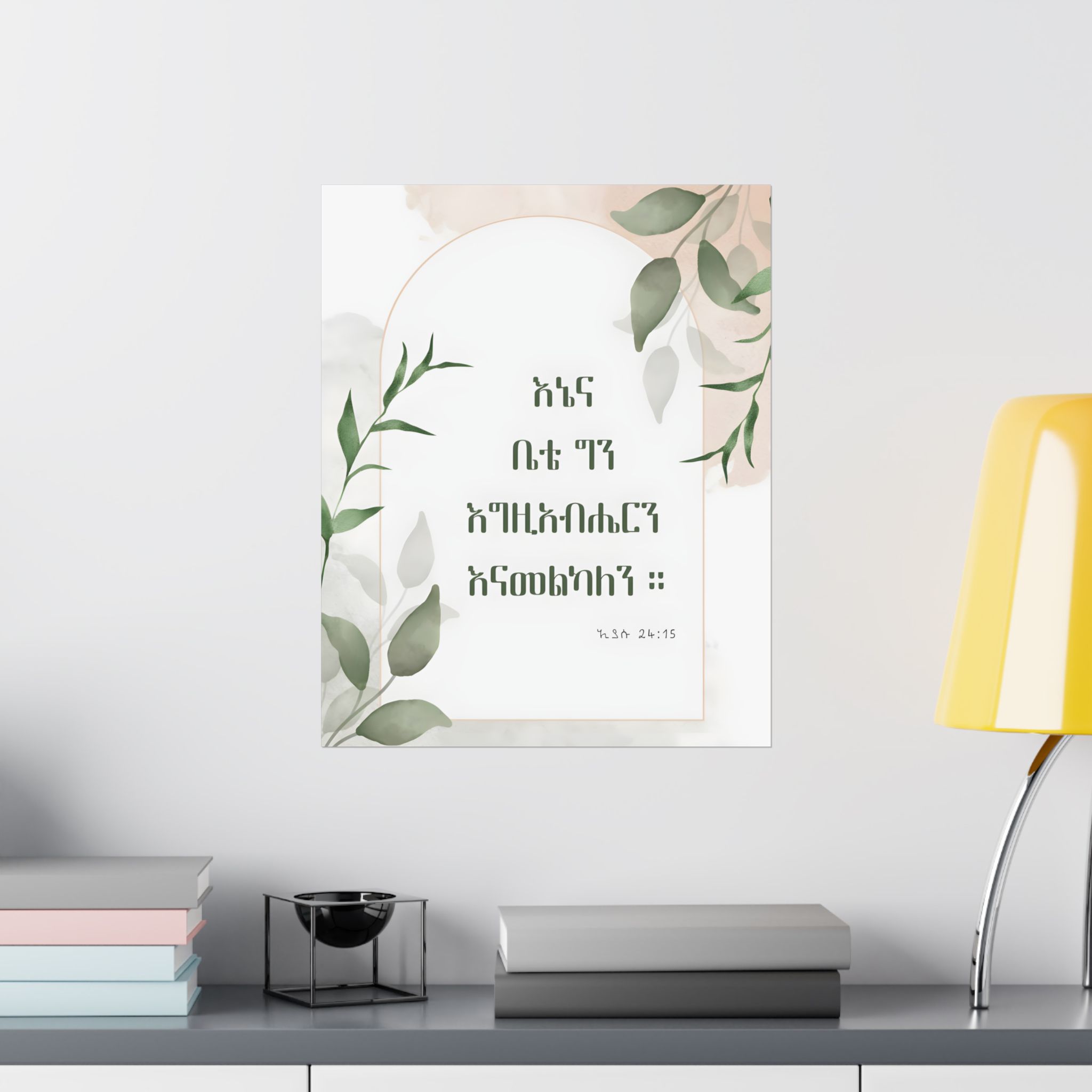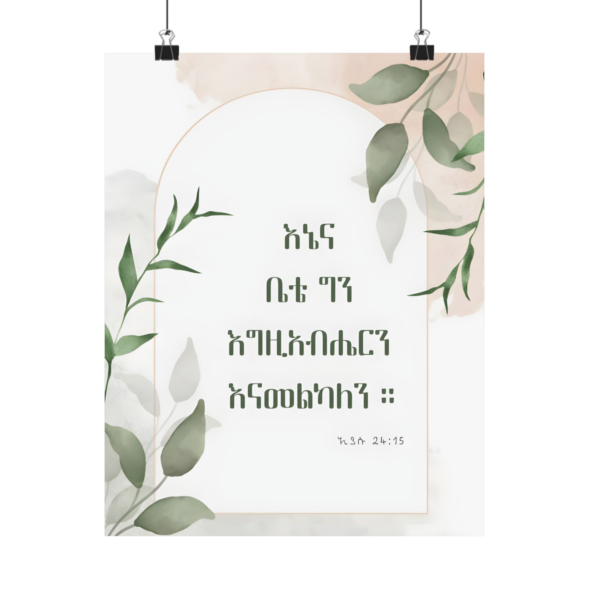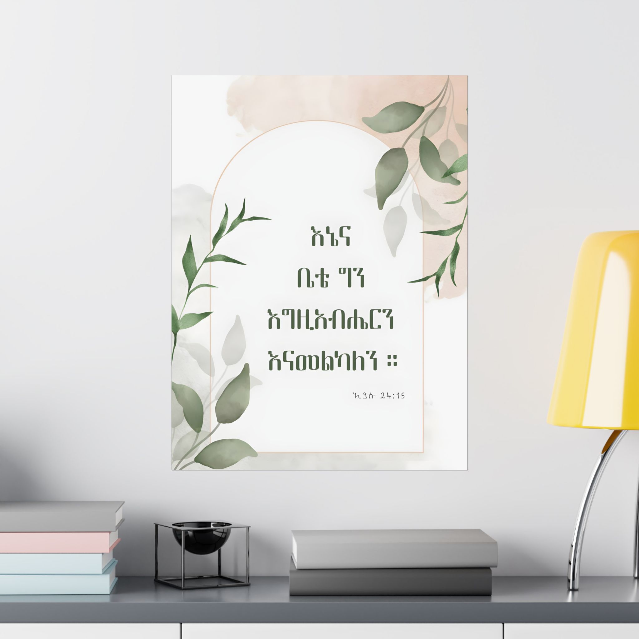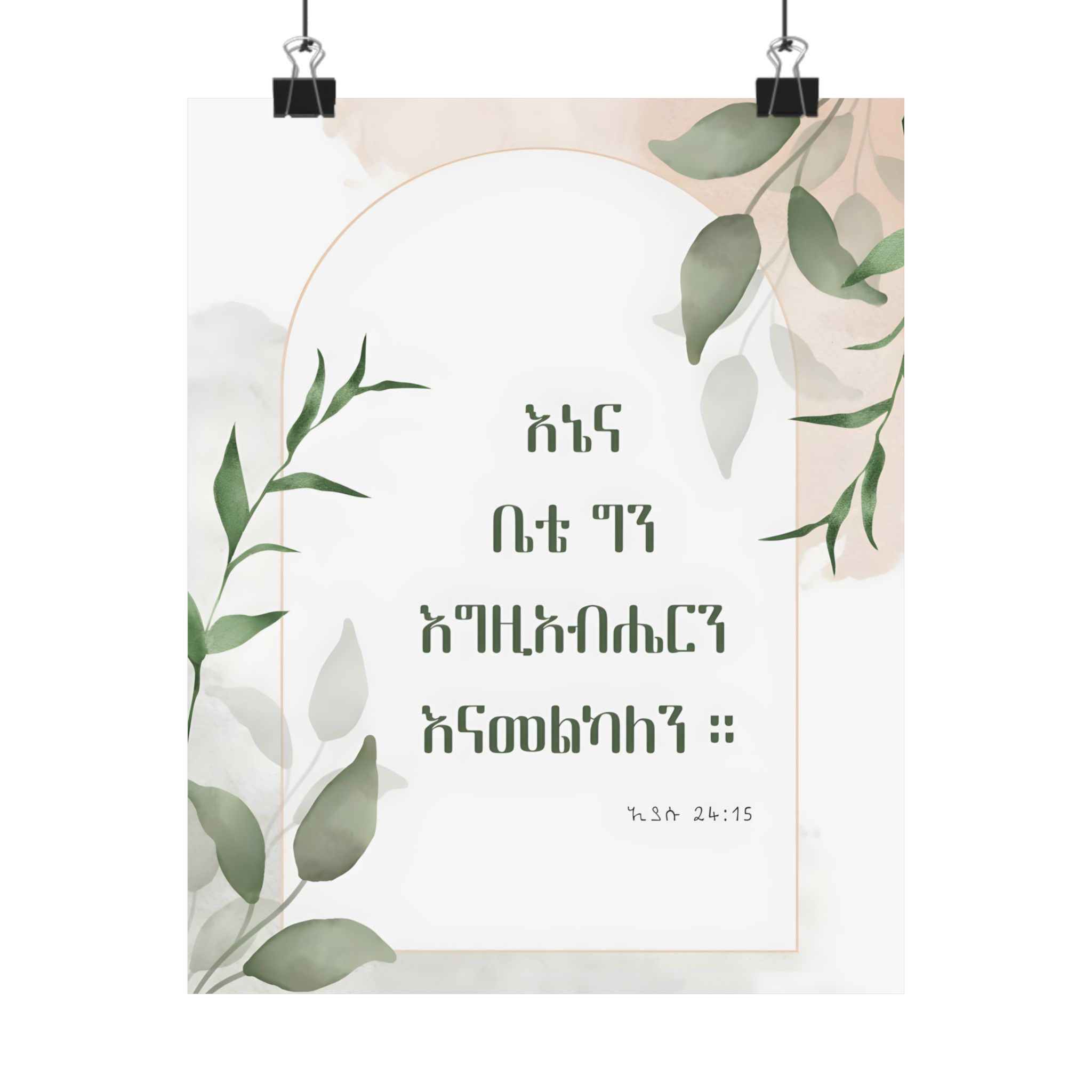 Declare your faith and commitment with this Amharic poster featuring Joshua 24:15: