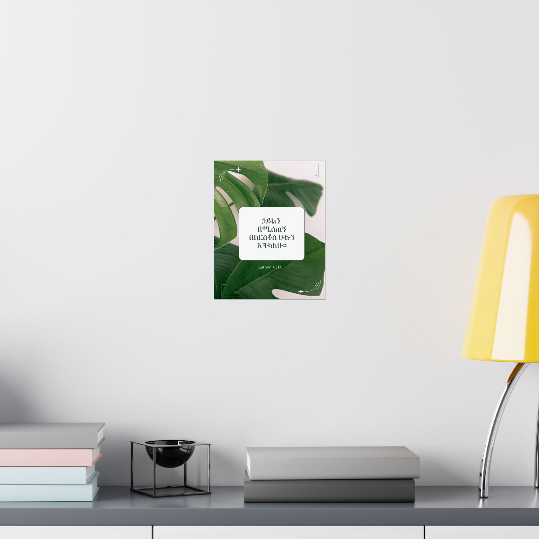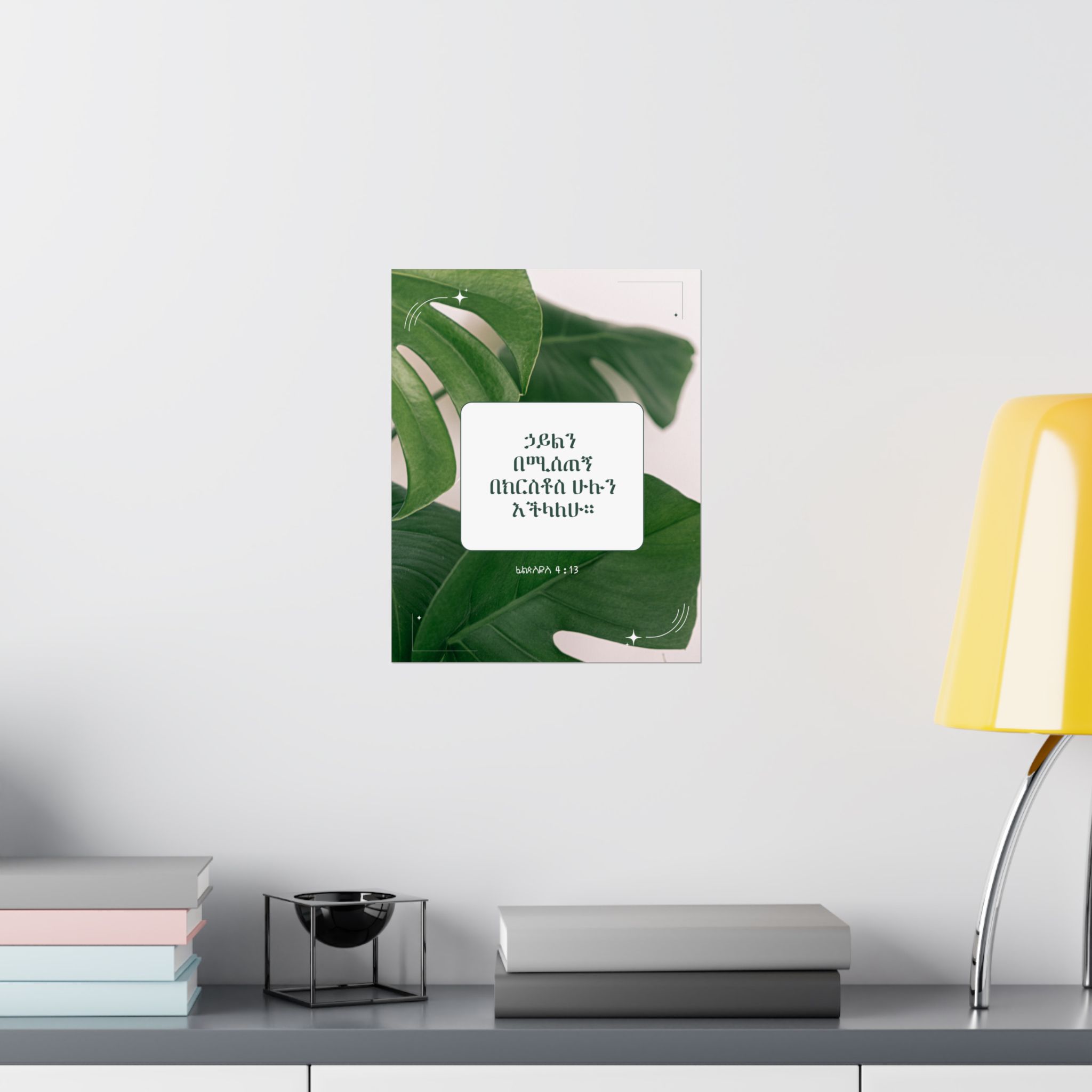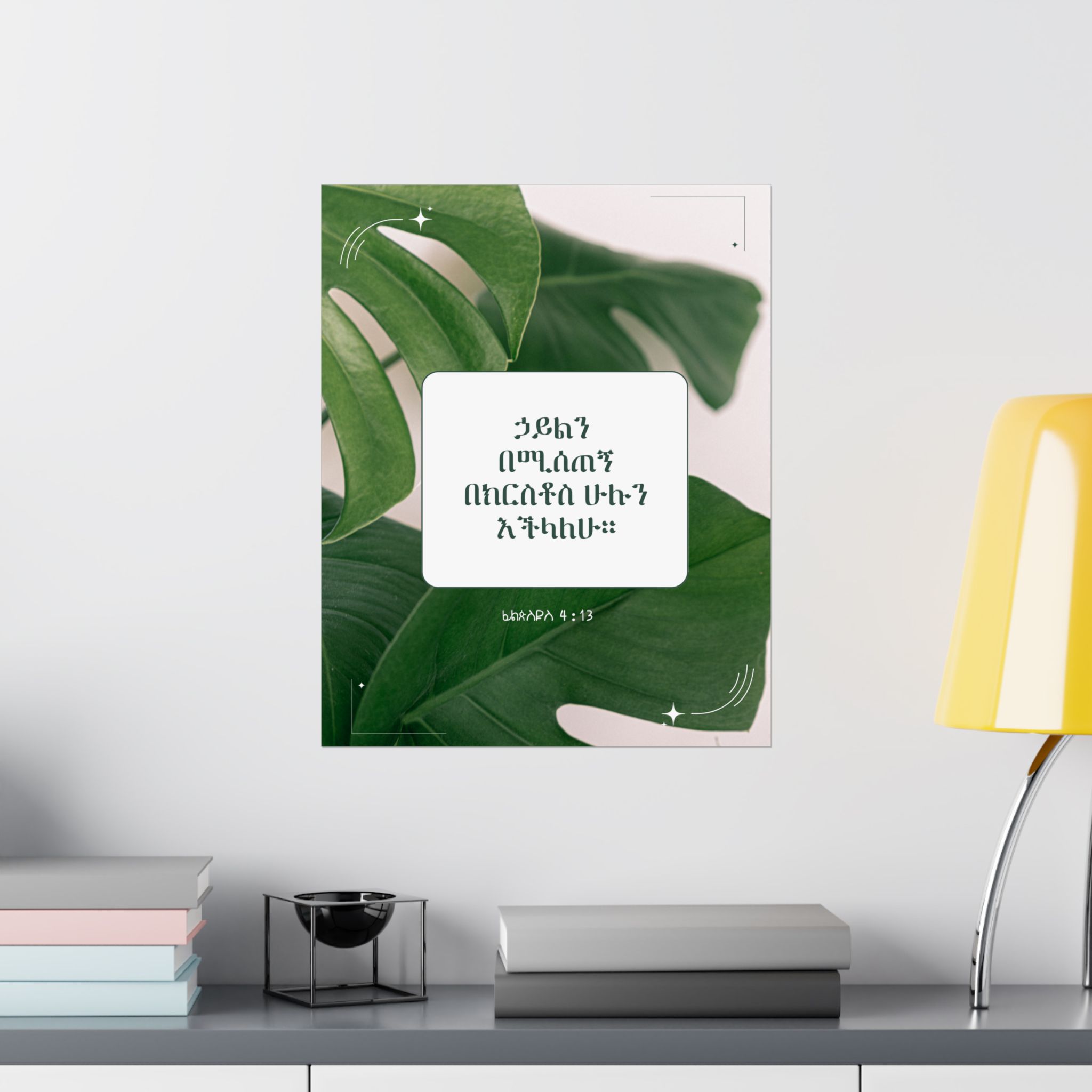 Bring faith and inspiration into your home with this Amharic poster featuring ፊሊጵስዩስ 4፥13.